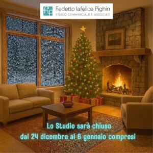 Lo Studio Fedetto Iafelice Pighin sarà chiuso in entrambe le sedi -Noventa Padovana ed Abano Terme- dal 24 dicembre 2025 al 6 gennaio 2026 compresi.